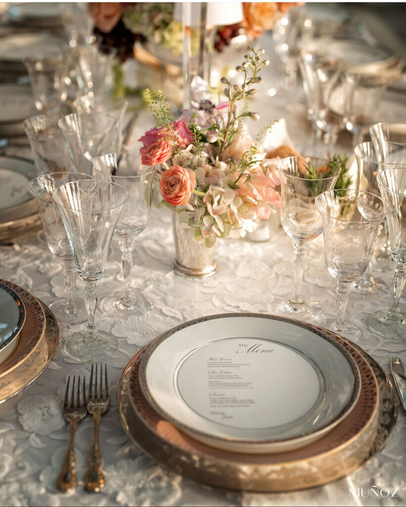 The place setting is where functionality meets design—these are the elements your guests will interact with directly throughout the event. Each component should be both beautiful and purposeful.