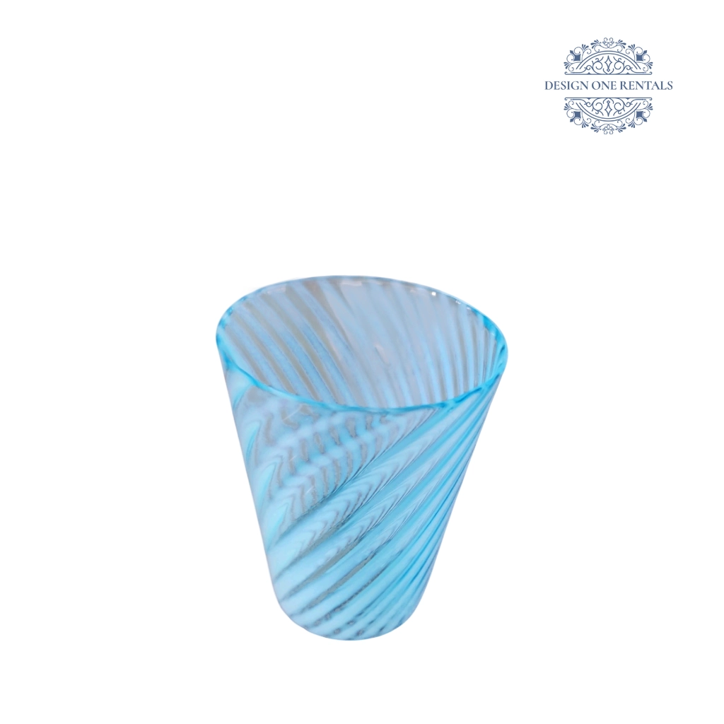 The Optic Light Blue Glass features a soft light blue hue with wavy, diamond-textured outer walls that make it a standout piece for any celebration. Its baroque-inspired design adds a touch of artistry to weddings, birthdays, and corporate gatherings, making it both functional and decorative. Perfect for party rentals, this glass is ideal for serving water, cocktails, or specialty drinks while creating a memorable table presentation. Best paired with the Clear Ridge charger plate, it seamlessly complements both classic and modern table settings.