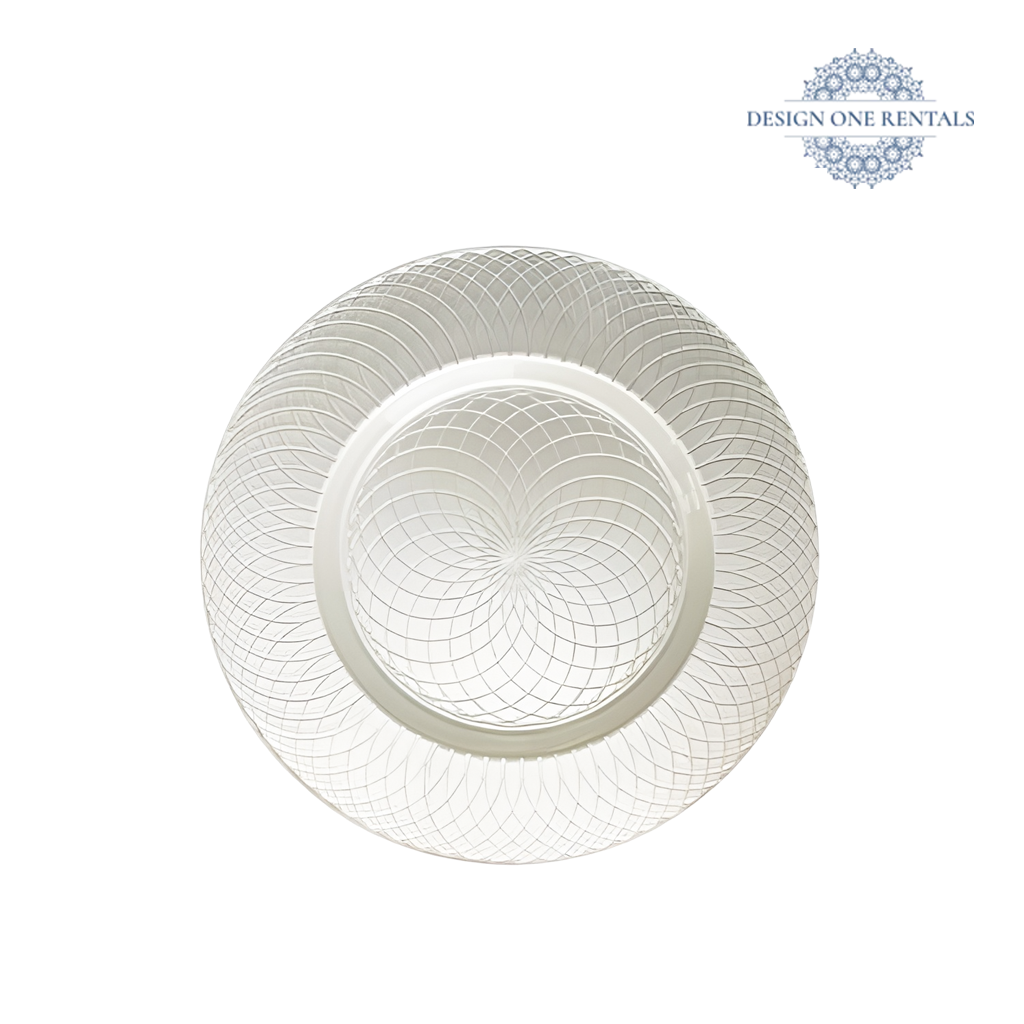 The Ripple Pearl Charger Plate showcases a captivating geometric swirl pattern that creates a graceful ripple effect across its surface. Its soft pearl white finish adds a luminous glow, bringing a refined and polished touch to any tablescape. Perfect for weddings, corporate dinners, or upscale celebrations, this charger adds subtle sophistication and texture to your event décor. Pair it beautifully with our Medina Collection for a timeless, radiant presentation.
