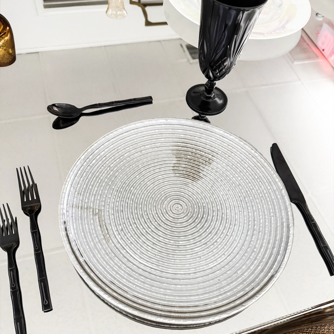 The Silver Luster Charger Plate features a refined woven texture crafted from durable faux straw material in a subtle tan tone, adding a natural yet sophisticated charm to any tablescape. Perfect for weddings, corporate events, and special celebrations, this charger plate serves as a stylish base for dinnerware while enhancing your overall table design. Its neutral color pairs beautifully with both modern and rustic themes, making it a versatile choice for party rentals. Best complemented with Crystal Cut Clear Collection for a coordinated, polished look.