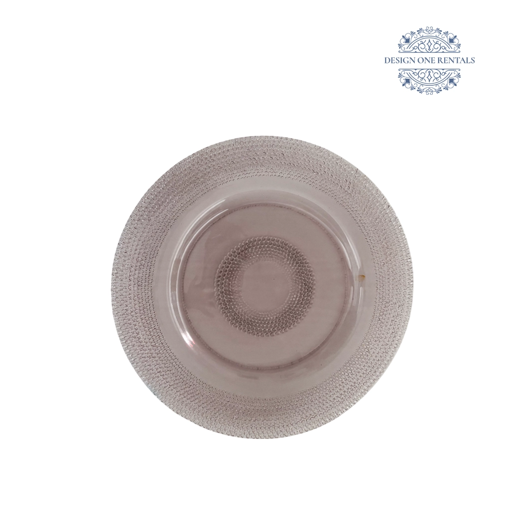 The Lilac Pebble Charger Plate showcases a refined beaded rim that adds texture and sophistication to its sleek, reflective surface. Its polished finish and classic round shape make it a versatile choice for weddings, formal dinners, or upscale celebrations. Event planners love its timeless design for creating stylish, high-end tablescapes. Pair it perfectly with our Silver Brocade Wine for a polished and graceful presentation.