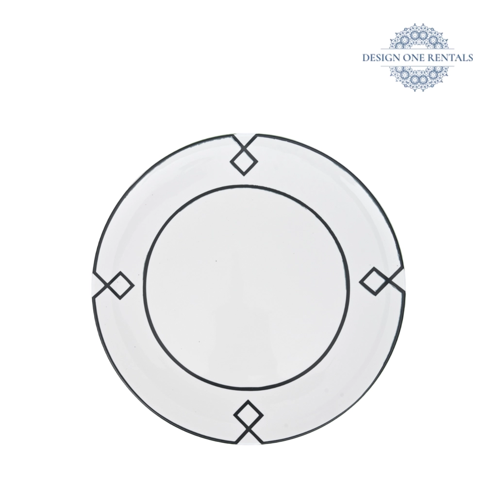 The Edge Nero Charger Plate features a crisp white base framed by a bold double black rim, offering a refined and contemporary style. Its minimalist design makes it a versatile addition to modern, formal, or monochrome-themed events. Perfect for weddings, galas, or corporate gatherings, this charger plate adds a sleek and balanced touch to any table setting. Pair it best with our Lizabeth for a sophisticated presentation.