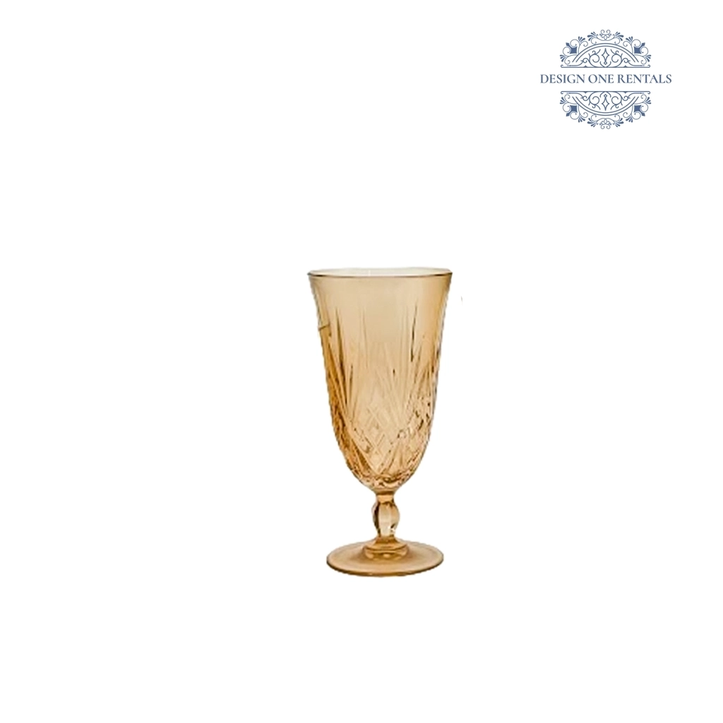Crystal Cut Dark Amber Water Goblet